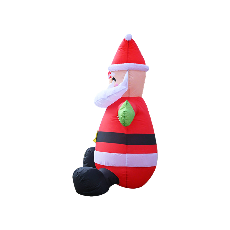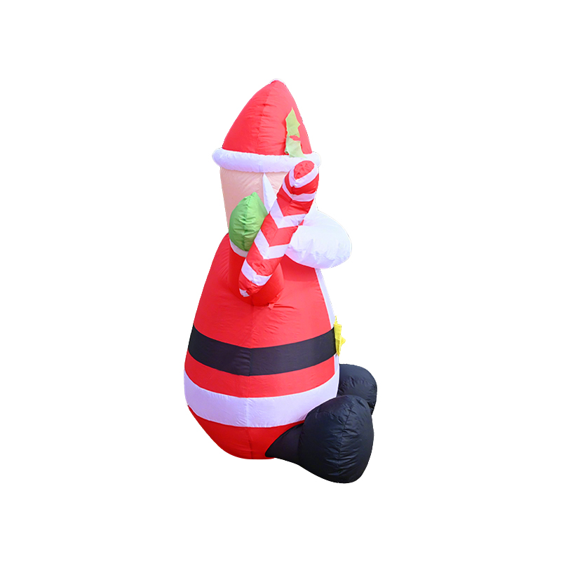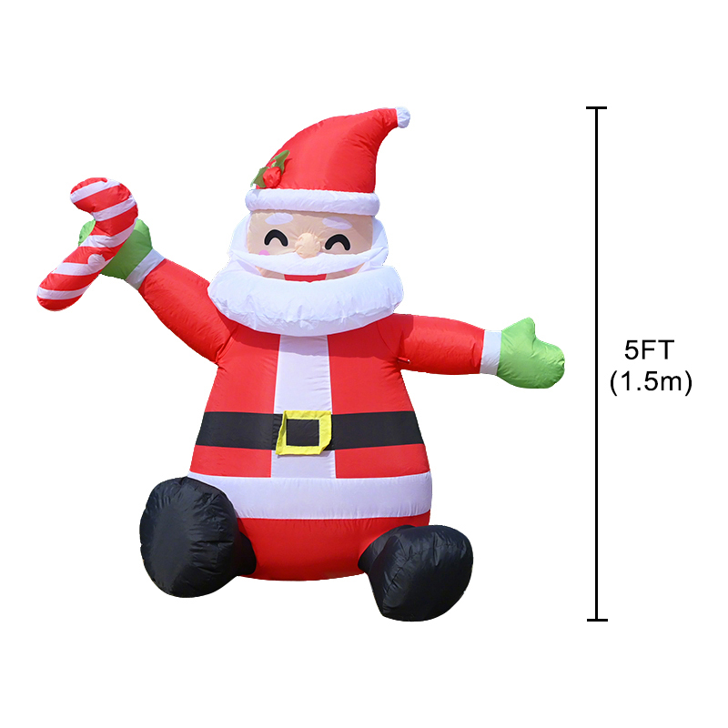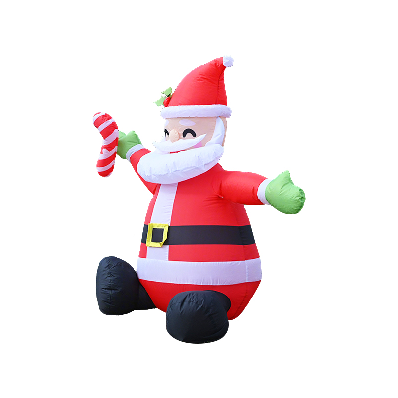 This cheerful inflatable Santa features a realistic sitting pose with a candy cane in hand. Crafted from high-quality nylon, it's ideal for outdoor Christmas decor. Produced in China's inflatable capital since 2010, with 1500㎡ workshop capacity.